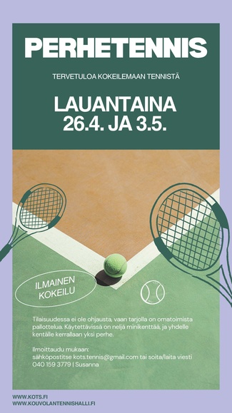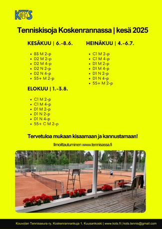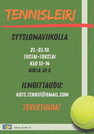 ILMOITTAUDU osoitteeseen kots.tennis@gmail.com.